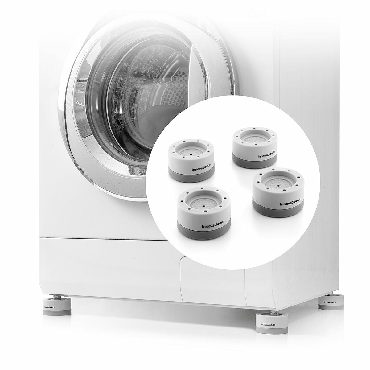 Les pieds anti-vibrations Novib InnovaGoods offrent une prise ferme et une stabilité totale à une variété d'appareils et de meubles. Ils sont très utiles pour éviter les vibrations gênantes et les déplacements des appareils tels que le lave-linge, etc. Ils peuvent également être empilés, et surélevés pour faciliter le nettoyage sous les meubles ou les appareils.