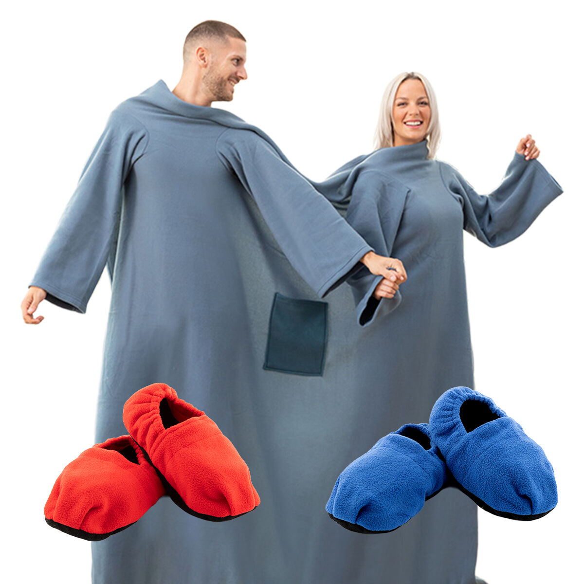 Pack Chaussons Chauffants Micro-ondes et Couverture à Manche Double avec Poche Centrale InnovaGoods