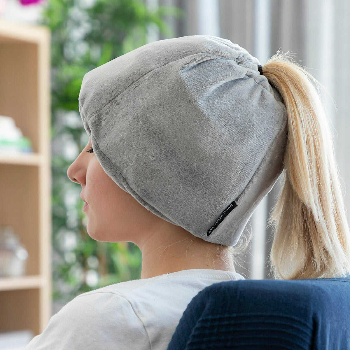 Un bonnet ergonomique avec du gel pour soulager les migraines, les tensions et les maux de tête. Il procure une grande détente, un soulagement et un bien-être grâce à son effet froid ou chaud. Grâce à sa conception à large couverture, il couvre le contour des yeux pour éviter l’inconfort de la lumière. En outre, il est doux et agréable au toucher, de sorte qu’il n’endommage pas la peau et ne provoque pas de frottements. Il contient 4 poches de gel amovibles qui peuvent être chauffées au micro-ondes pour obtenir l’effet chaud, ou placées au réfrigérateur/congélateur pour obtenir l’effet froid. Ce bonnet multiposition confortable est facile à utiliser, flexible et adaptable, car il dispose d’un cordon de serrage pour l’ajuster à la taille de la tête. Lorsque les poches de gel qu’il contient sont retirées, il se plie facilement et prend très peu de place pour le transport et le stockage. Il peut être facilement lavé à la main (sans les poches de gel). Non recommandé pour dormir.