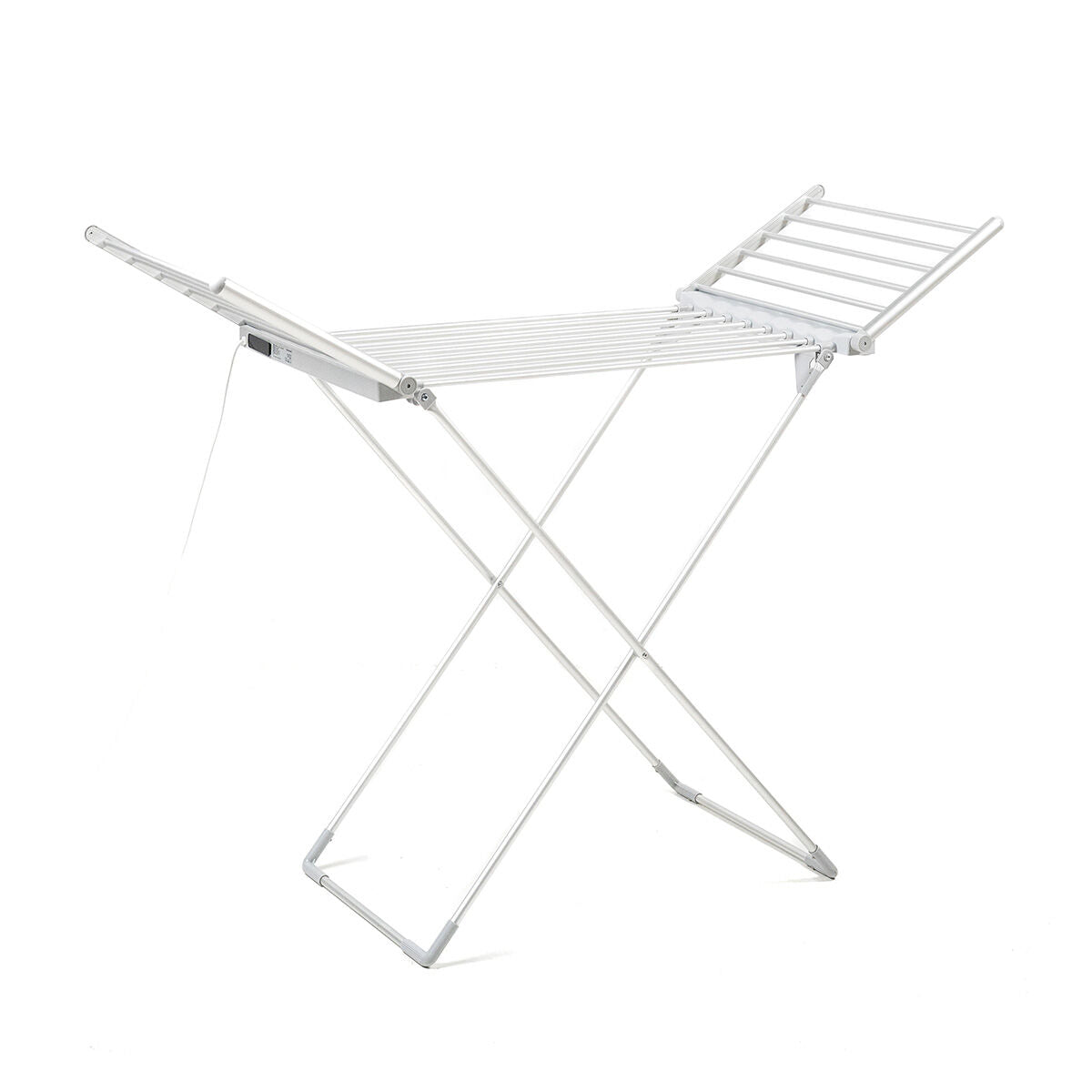 - Foldable, electric design: our foldable electric drying rack is lightweight, durable, and safe. Its aluminum frame and crossed X-shape provide greater stability and support. It folds easily, taking up minimal space when stored. Can be placed behind doors, in closets, etc.