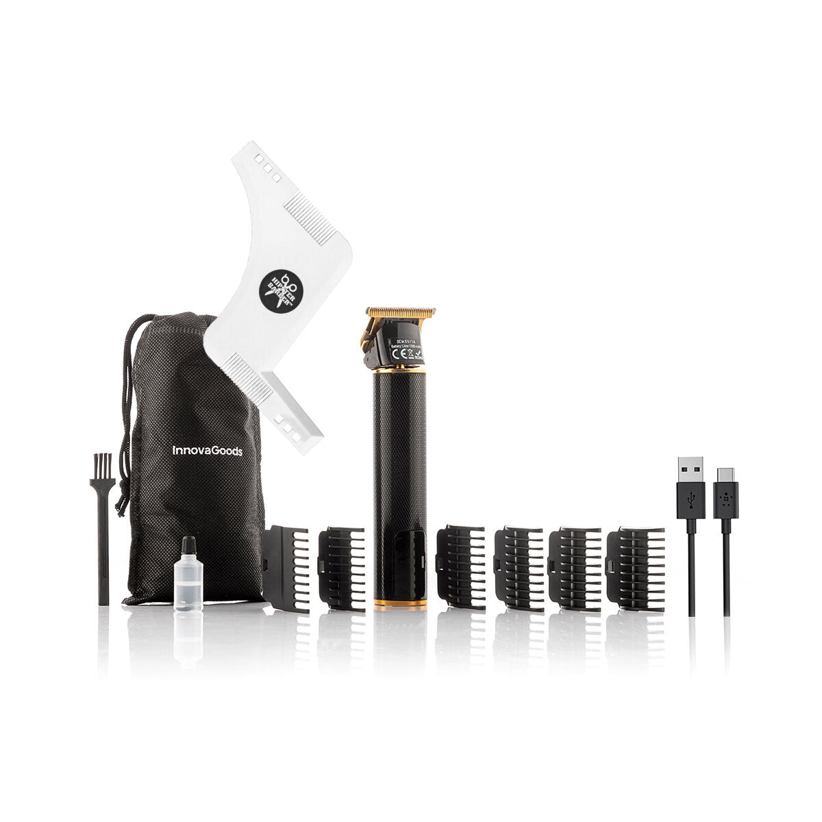 Pack Hipster Barber Beard Template for Shaving and Professional Rechargeable Hair Clipper with Accessories InnovaGoods