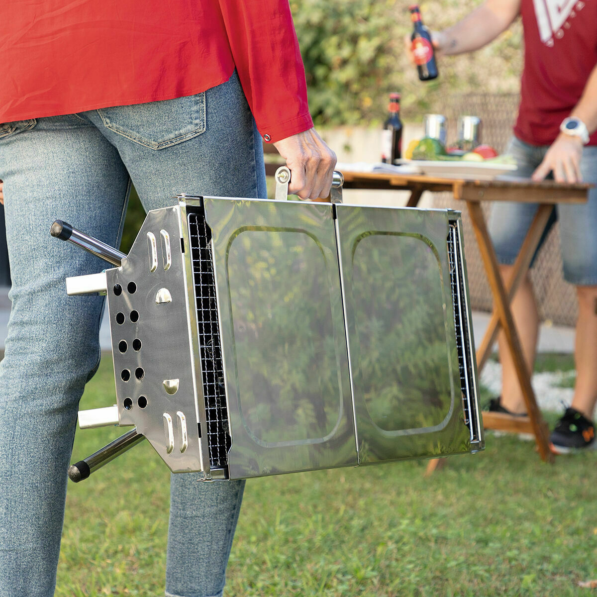 - Barbecue au Charbon de Bois Pliable en Acier Inoxydable