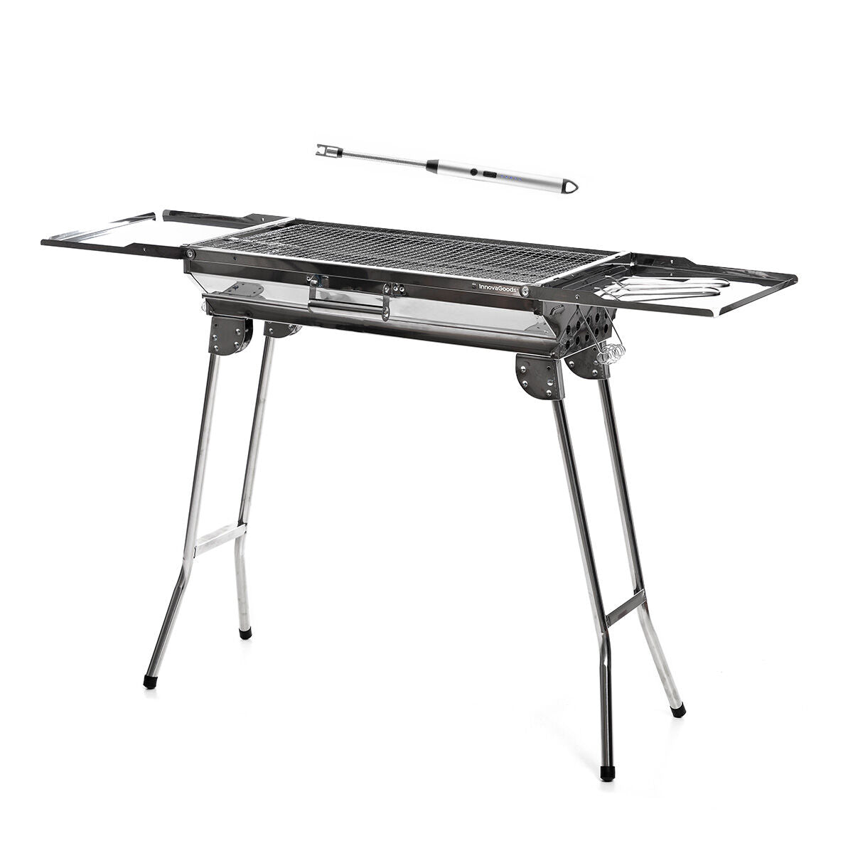 Pack Barbecue au Charbon de Bois Pliable en Acier Inoxydable et Briquet Électrique Rechargeable et Flexible InnovaGoods