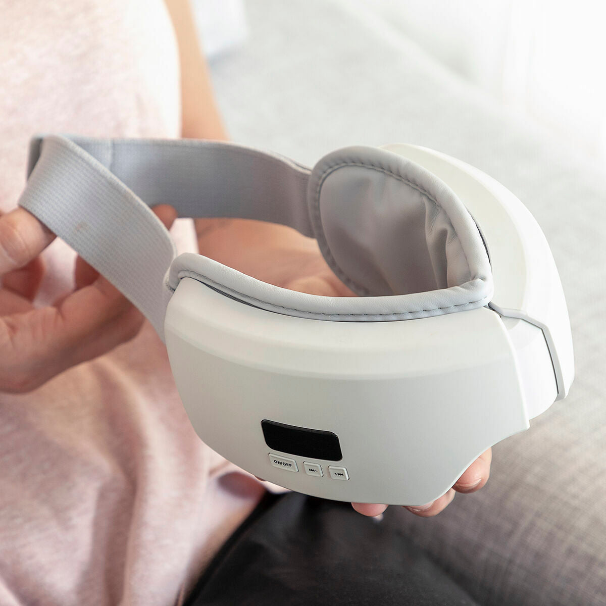 Masseur d’yeux multifonction 4 en 1, qui fournit un massage relaxant et réparateur, favorise le repos et aide à trouver le sommeil. Grâce à sa conception ergonomique et réglable, il est adapté à toute personne et est très pratique et facile à utiliser. La zone intérieure en contact avec la peau est en cuir synthétique, ce qui apporte un aspect élégant et un toucher doux et confortable. Portatif et rechargeable (charge sans fil), il est facile de transporter n’importe où pour l’utiliser facilement, sans besoin de câbles ni de prises. Avec sa fonction de chaleur, il fournit un agréable sentiment de détente et de bien-être, avec une température allant jusqu’à environ 30-42 °C. La compression d'air exerce une pression sur les points clés pour obtenir de multiples effets bénéfiques. Il dispose de 5 modes de massage par vibration, combinant ses différentes fonctions. De plus, il comporte un haut-parleur intégré avec plusieurs mélodies et sons relaxants pour accroître l’effet calmant, mais il dispose également du Bluetooth pour écouter de la musique à partir d'autres périphériques. Câble USB vers un micro USB inclus.