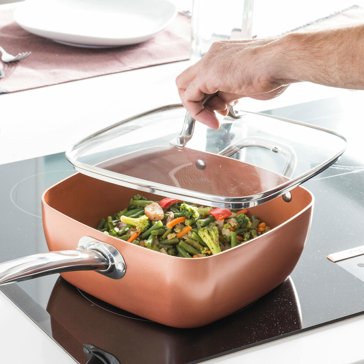 - Compatible: Convient à tous les types de cuisines (électrqiues, gaz, vitrocéramiques, ou à induction)