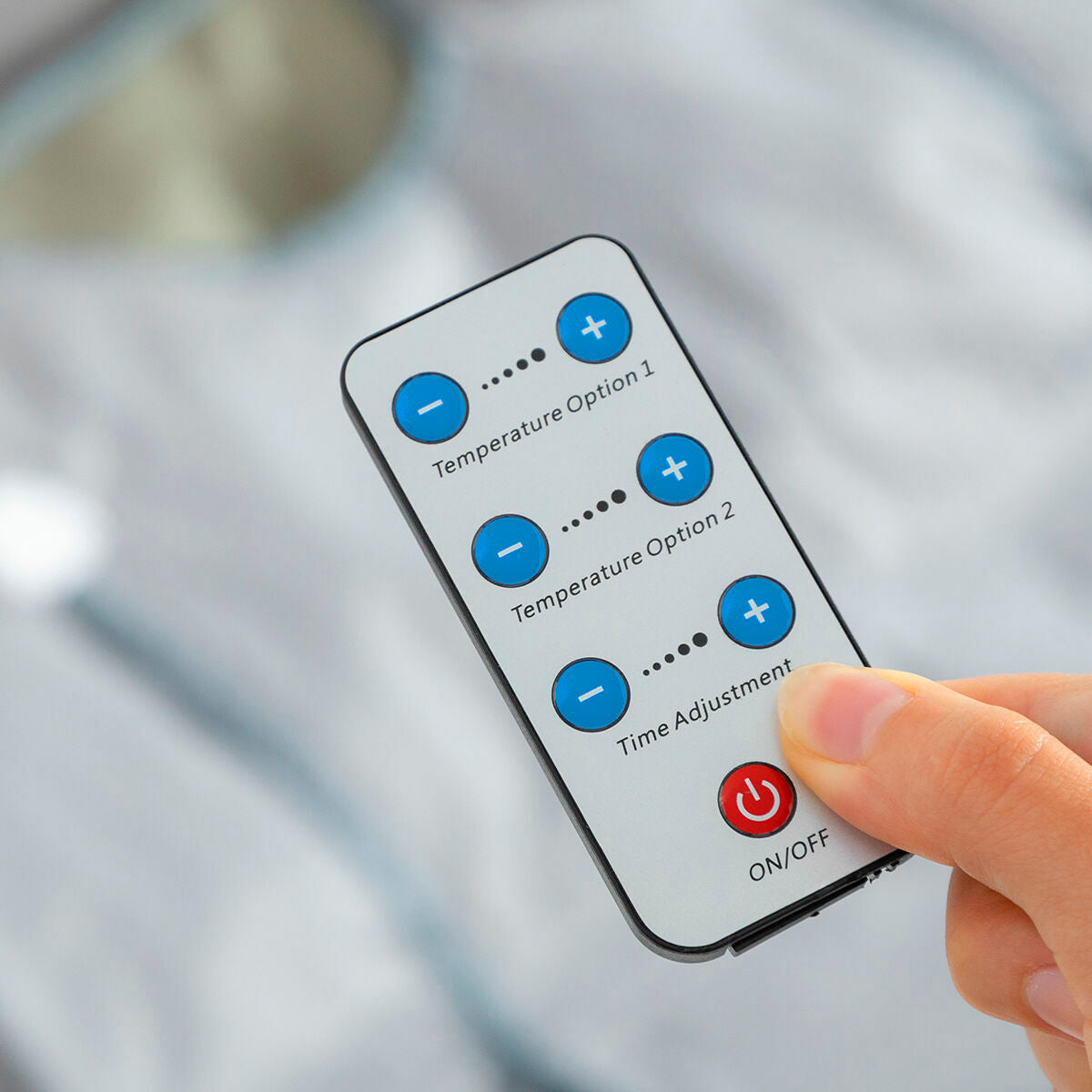 Cette couverture de sauna à infrarouges est très facile à utiliser en suivant attentivement les instructions du manuel inclus. Il vous suffit d’ouvrir complètement la fermeture à glissière principale, de vous mettre à l’intérieur et de fermer la fermeture à glissière. Les bras peuvent être sortis en ouvrant les 2 plus petites fermetures à glissière. Ses fonctions peuvent être contrôlées avec le module de commande ou confortablement avec la télécommande.
