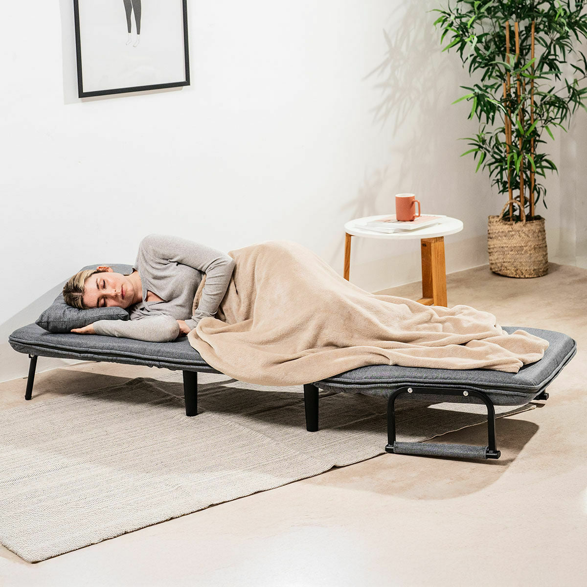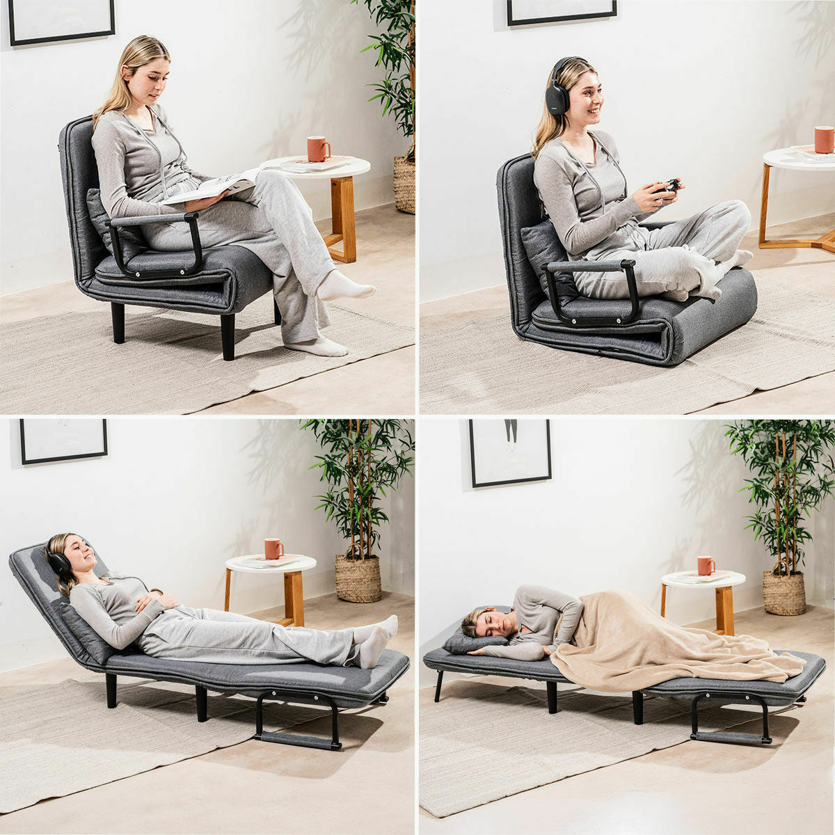 Ce canapé-lit convertible 4 en 1 permet plusieurs options de repos grâce à sa conception polyvalente : fauteuil, fauteuil de sol, chaise longue, lit simple.